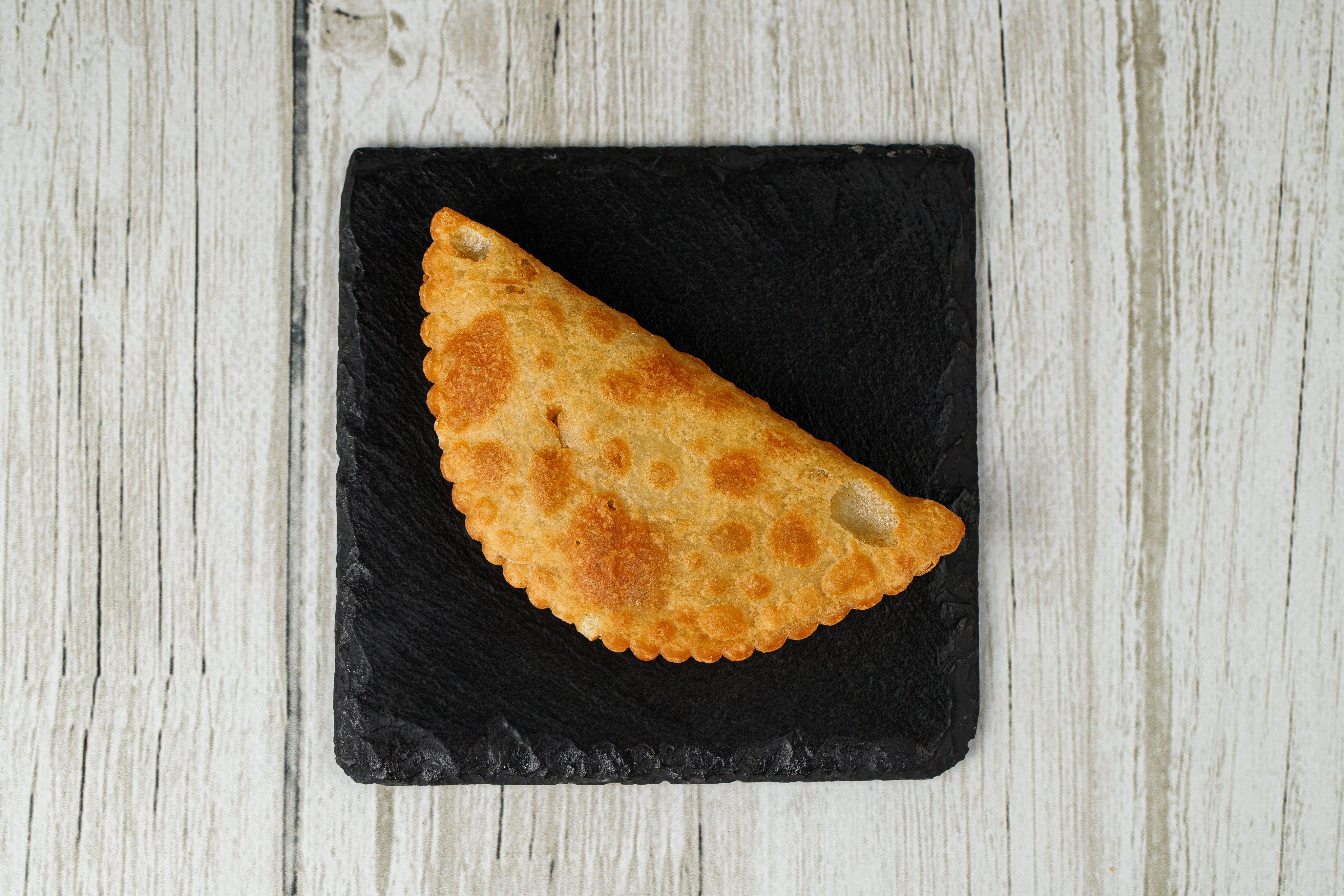 Фарш говядина, мясо цыпленка-бройлера бескостное, лук репчатый свежий, свинина, вода питьевая, жир говяжий, мука соевая, белок соевый, крахмал картофельный, соль, клетчатка пшеничная, пряности порошок горчичный, перец черный, чеснок, петрушка, лук-порей, масло растительное. Тесто мука пшеничная хлебопекарная высший сорт, вода питьевая, масло растительное, сахар, соль, дрожжи хлебопекарные.