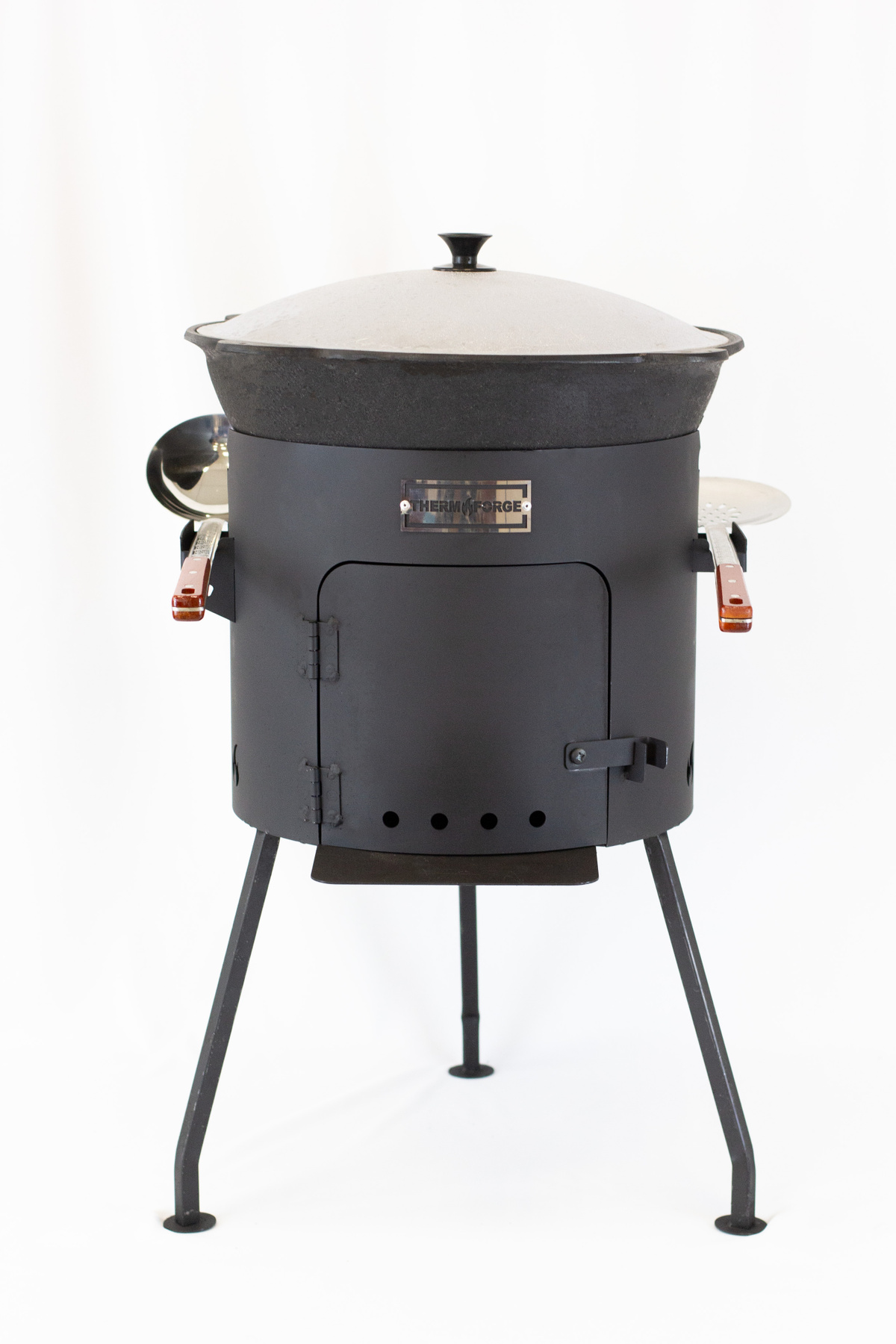 Плоское дно, толщина дна 8 мм, диаметр крышки 40 см, высота с ножками 60 см