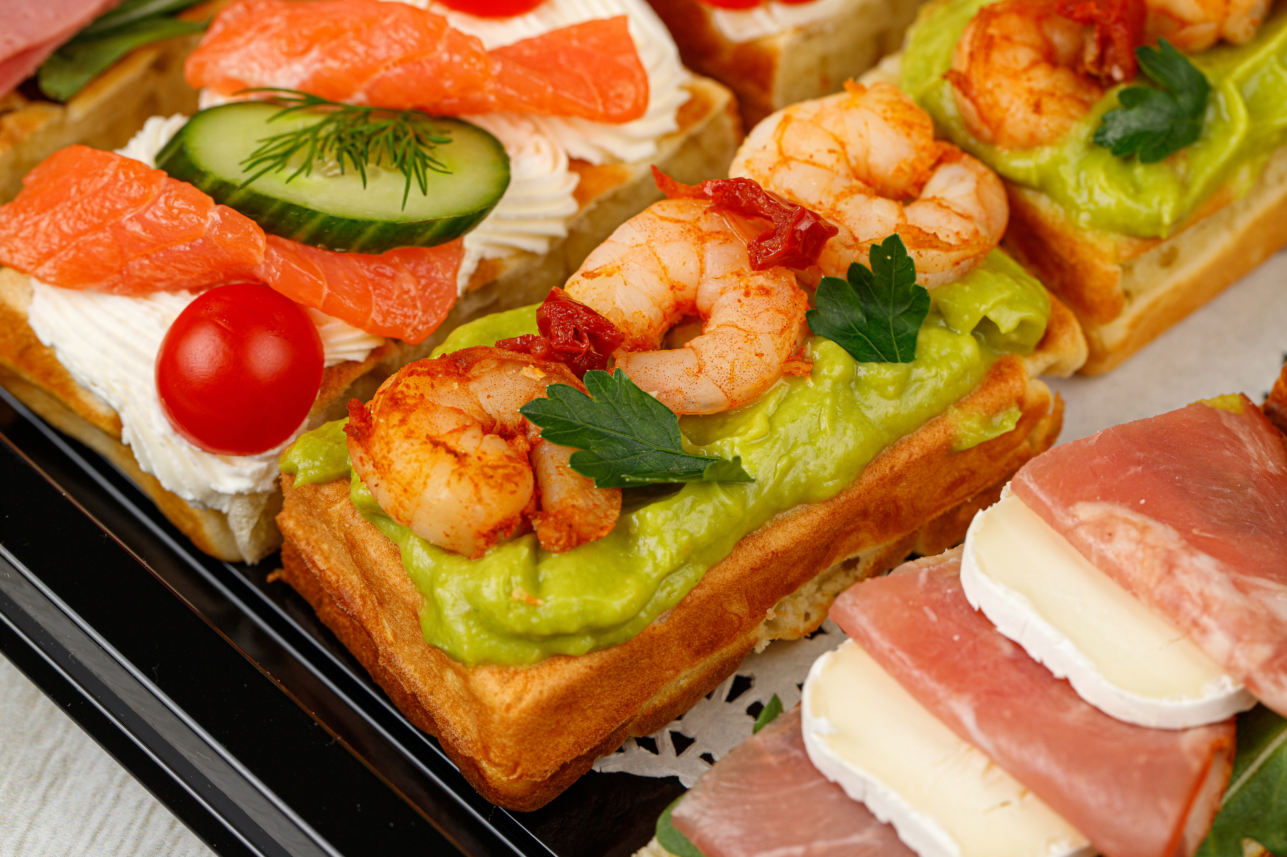 | Вафли Бельгийские с тигровыми креветками и гуакамоле | 2 |