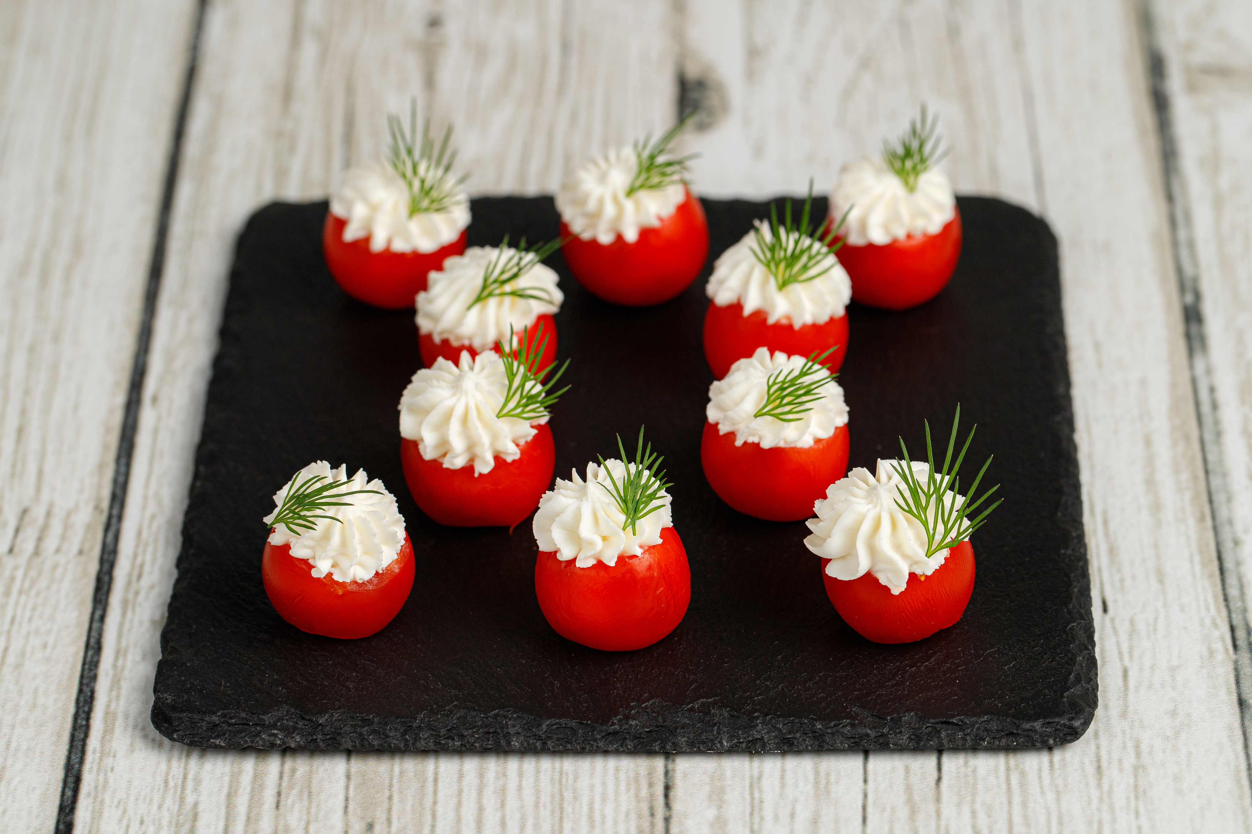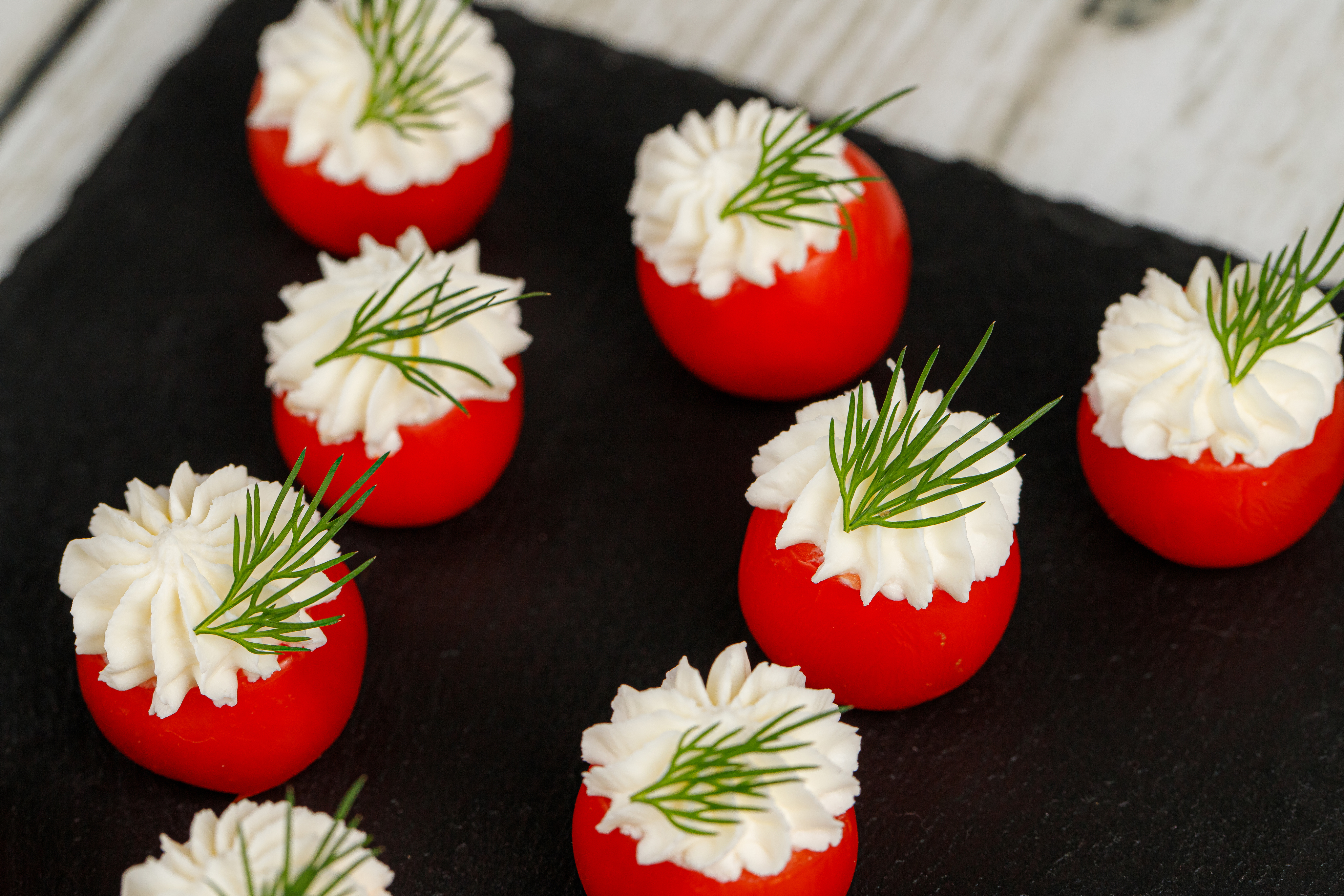 Помидор черри, фаршированный сырным кремом